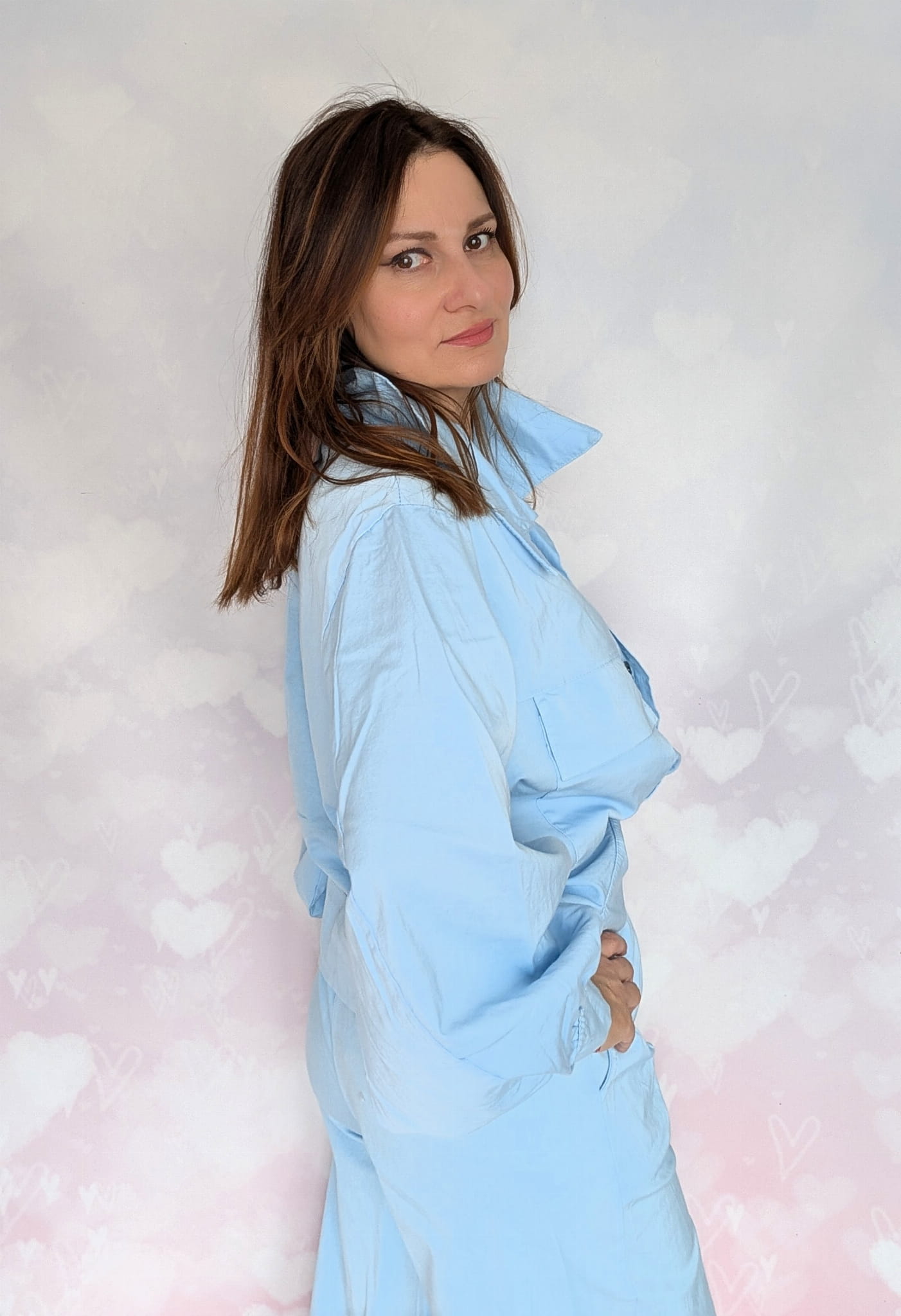 - Detale, które robią różnicę: Szerokie mankiety, klasyczny kołnierzyk i ozdobne guziki nadają całości sznytu.