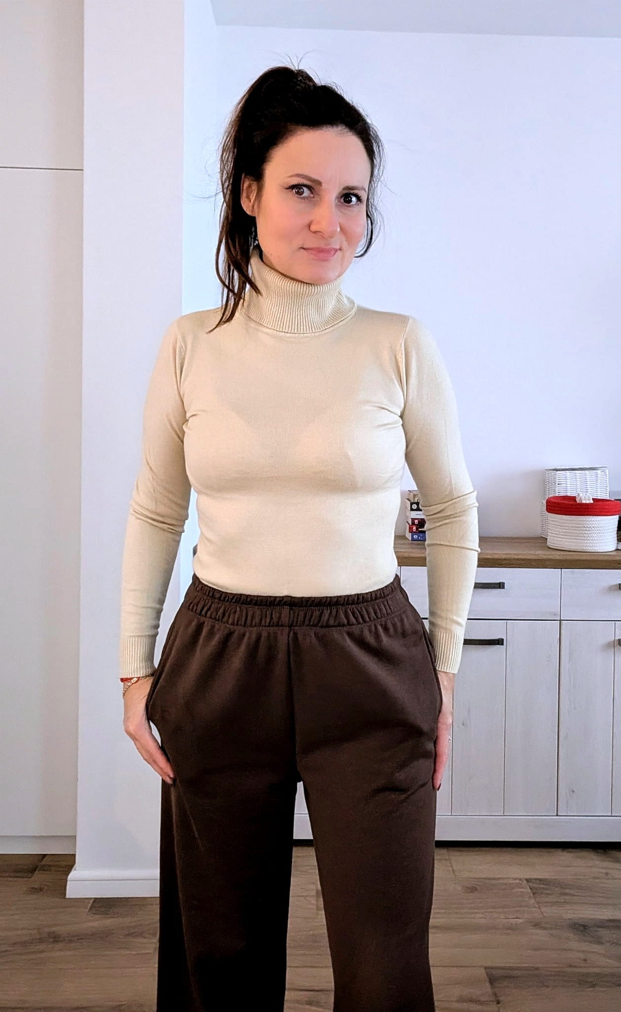 Bazowy Golf Damski z Wiskozą beżowy ciepły