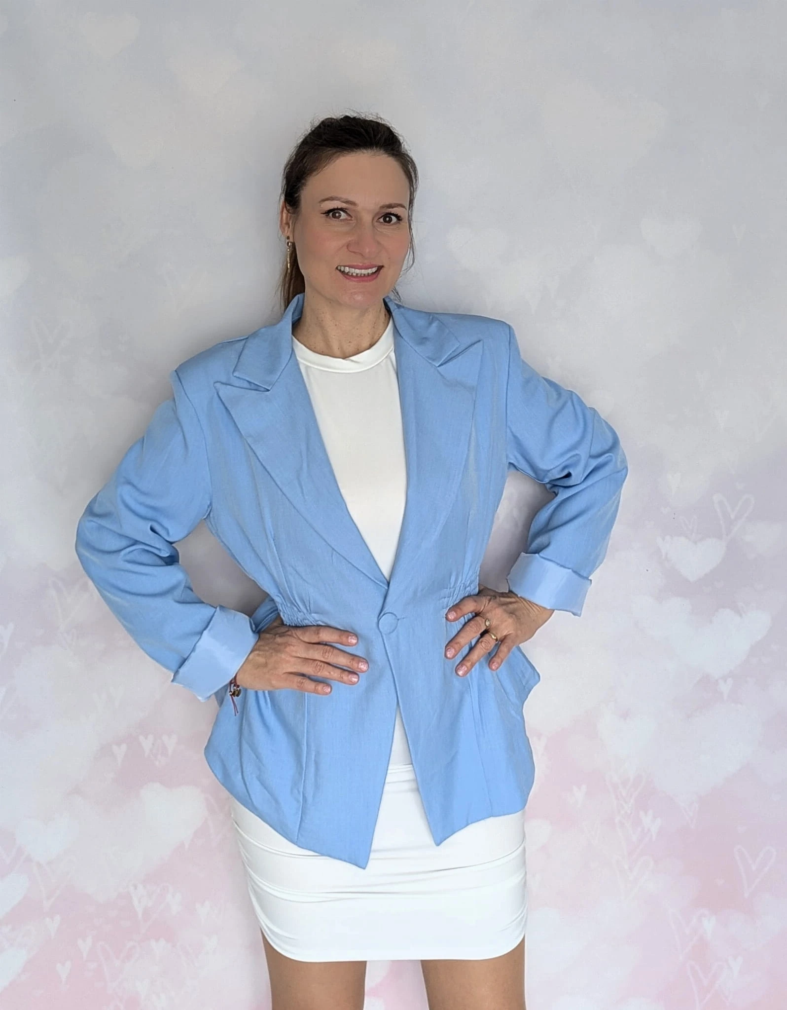 Elegancka marynarka z marszczeniem w talii, niebieska