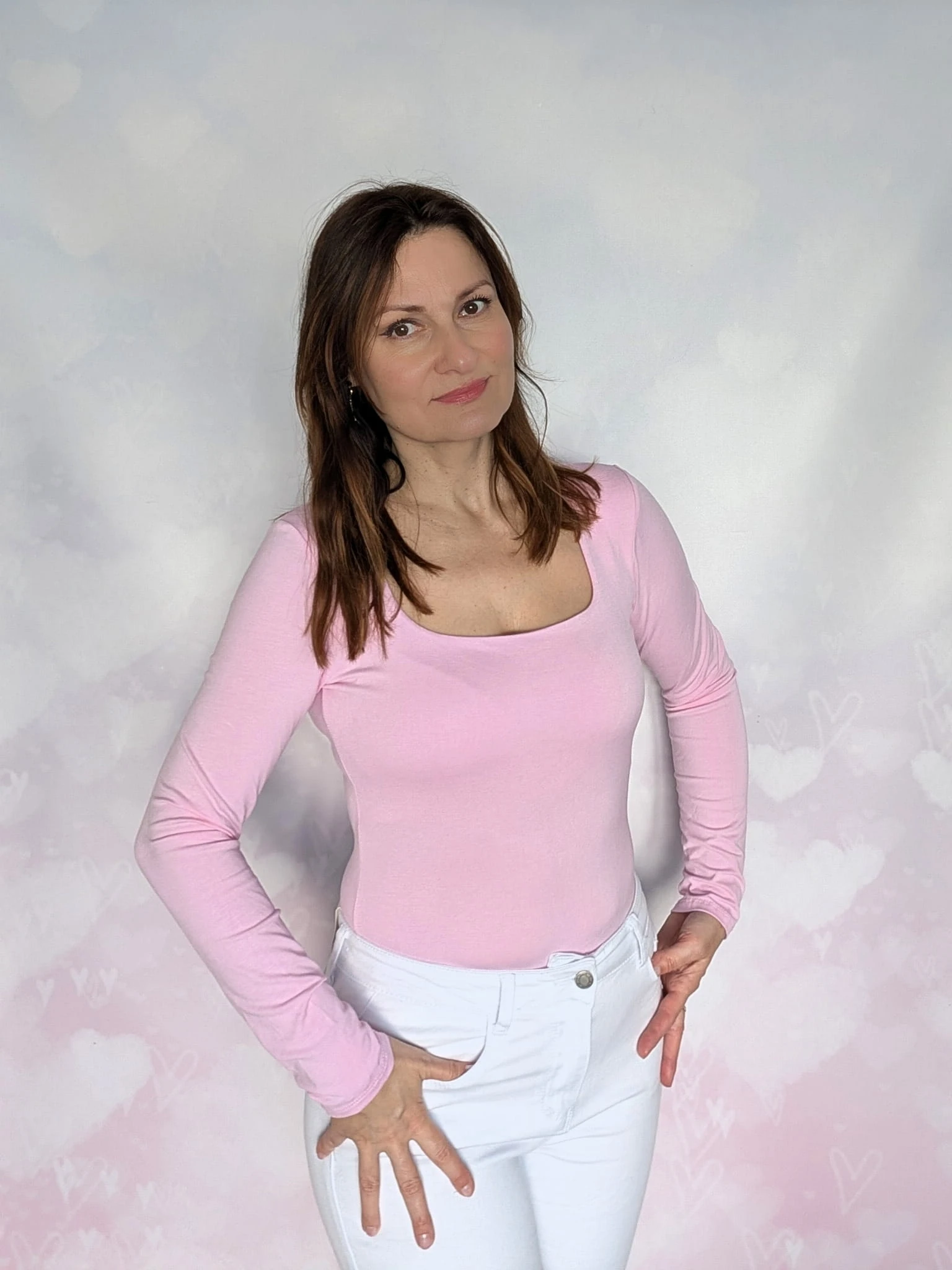 Klasyczne body z dekoltem typu karo z bawełny różowe