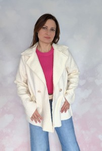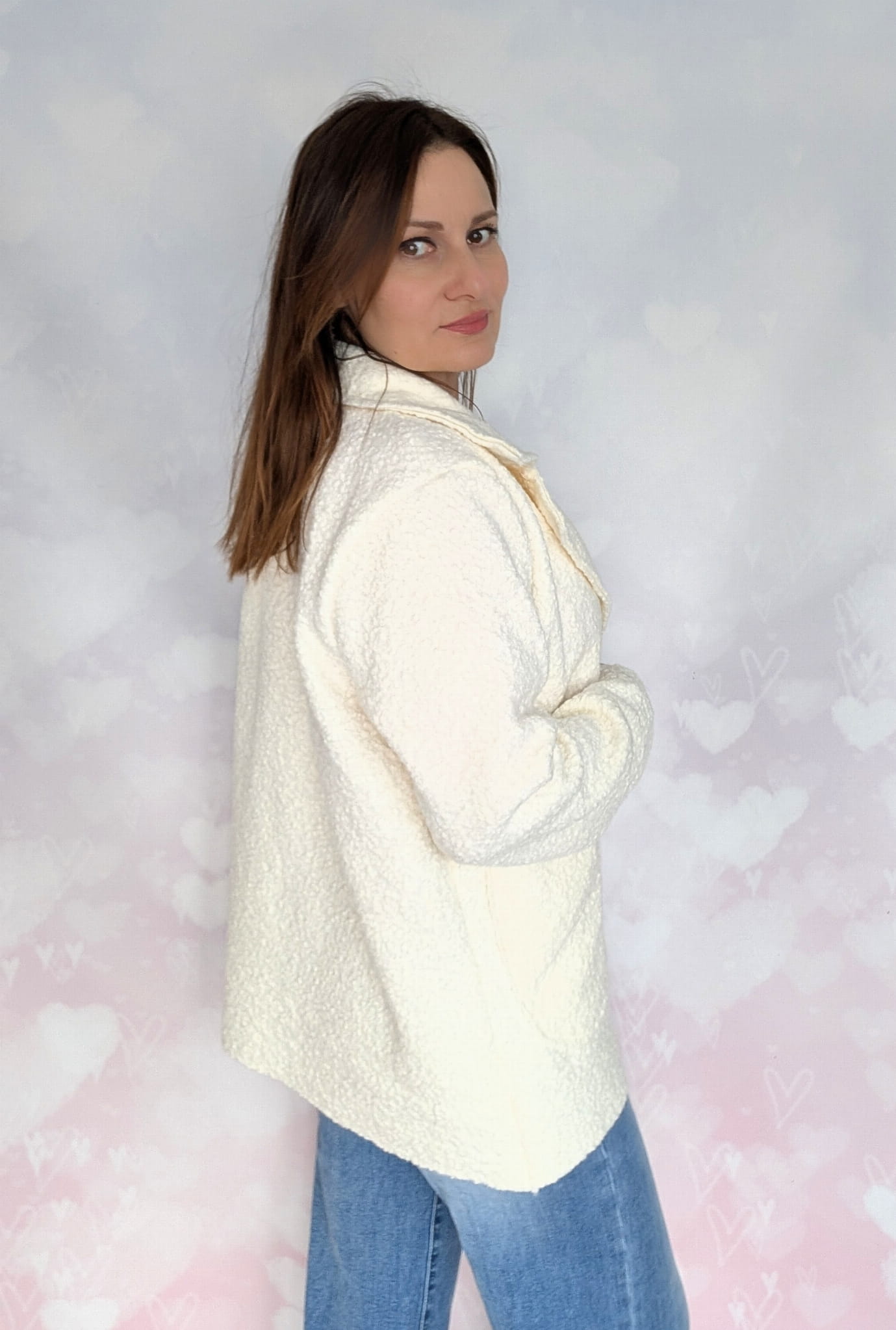Krótki płaszcz boukle śmietankowy biały
