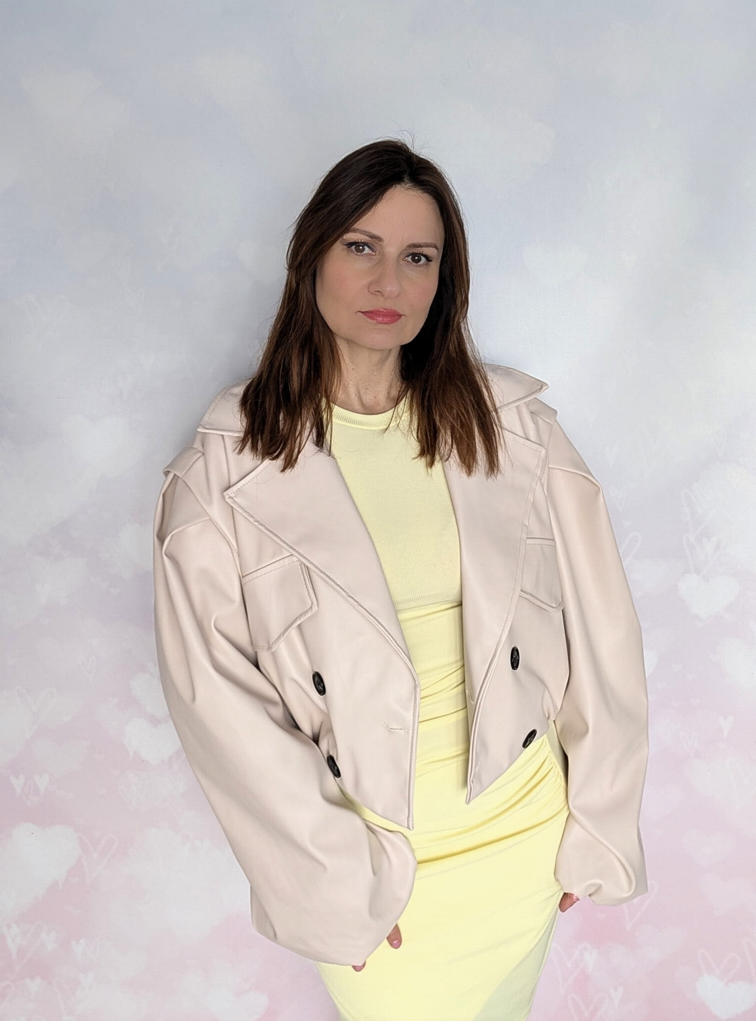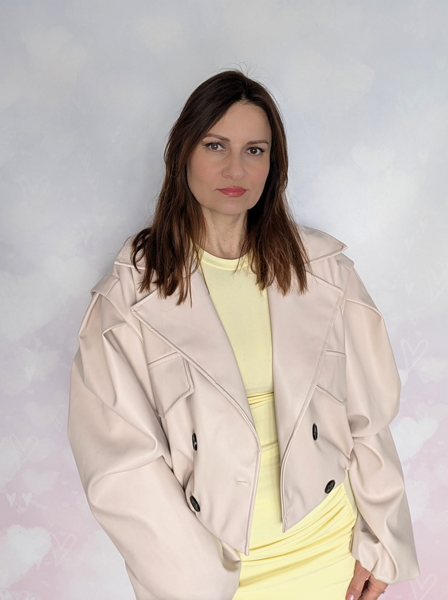 Szukasz elementu garderoby, który doda Twoim stylizacjom "pazura", a jednocześnie pozostanie niezwykle kobiecy? Nasza najnowsza propozycja to absolutny must-have tego sezonu. Krótka kurtka o fasonie oversize, wykonana z wysokiej jakości, miękkiej eko-skóry, to połączenie nowoczesnego designu z nutką retro. Szerokie, bufiaste rękawy z dekoracyjnymi przeszyciami nadają sylwetce unikalny, modowy kształt. Krótki krój (crop) fenomenalnie podkreśla talię, szczególnie w zestawieniu z sukienkami lub spodniami z wysokim stanem. Klasyczne, szerokie klapy, dwurzędowe zapięcie na stylowe guziki oraz praktyczne patki imitujące kieszenie. Luźny fason oversize zapewnia pełną swobodę ruchów i pozwala na założenie pod spód nawet grubszego swetra czy bluzy.