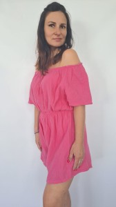 Muślinowy kombinezon typu carmen różowy