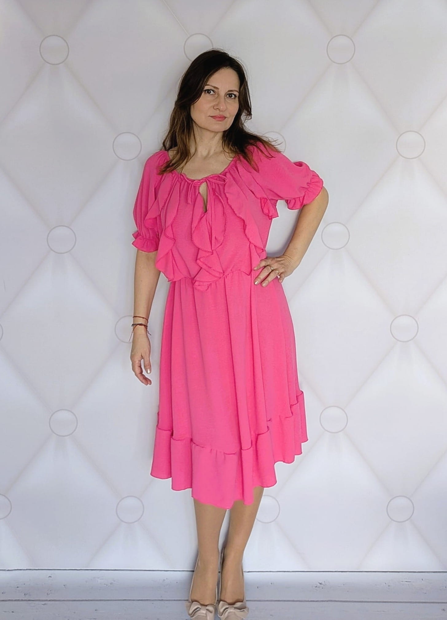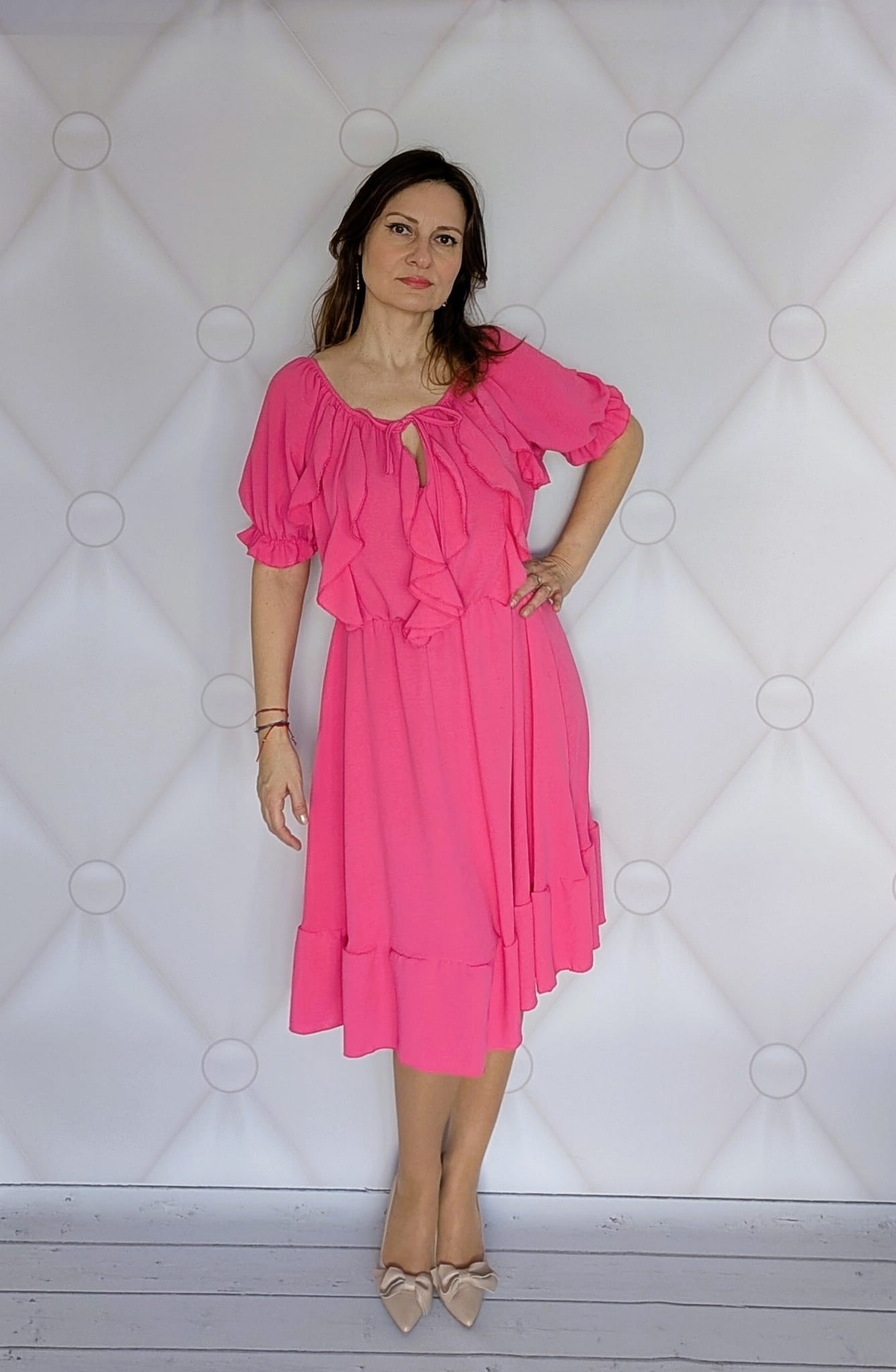 Sukienka z falbankami-romantyczna i stylowa różowa